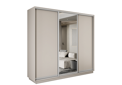 Шкаф-купе Lux 210х230х57 кашемир Белый глянец/Зеркало/Белый глянец