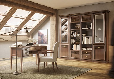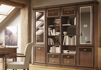 Шкаф Чарли с витриной (правый, со шпонированными полками) Шафран