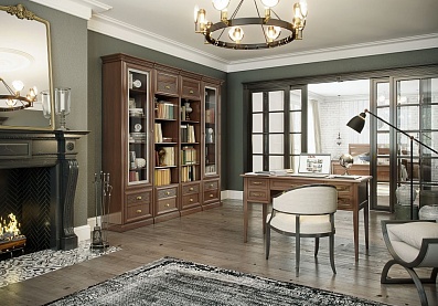Шкаф Чарли с витриной (левый, со шпонированными полками) Шафран