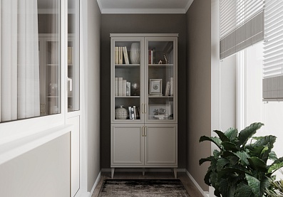 Шкаф Чарли с витриной (правый, со шпонированными полками) Серый агат